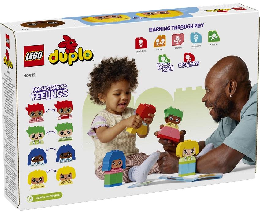 Βοηθήστε τα παιδιά να εκφραστούν καθώς διασκεδάζουν μέσα από το παιχνίδι με το ενεργητικό σετ LEGO® DUPLO® My First Μεγάλα Συναισθήματα. Κάθε ένας από τους 4 χαρακτήρες είναι σχεδιασμένος να ενθαρρύνει τα παιδιά προσχολικής ηλικίας να αναπτύξουν αυτοεπίγνωση και έχει 2 εκφράσεις, χαρούμενη και δυσαρεστημένη, βοηθώντας τους ενήλικες και τα νήπια να εξερευνήσουν τους λόγους που μερικές φορές έχουμε μεγάλα συναισθήματα.