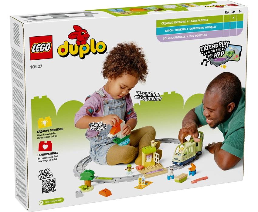 Τα νήπια κάνουν άπειρα ταξίδια εξερεύνησης με αυτό το σετ διαδραστικού τρένου. Επιλέγουν τον προορισμό και ξεκινούν για ένα ταξίδι γεμάτο φώτα, ήχους και προσαρμόσιμη διασκέδαση. Η δωρεάν εφαρμογή LEGO® DUPLO® Interactive Trains επεκτείνει το παιχνίδι, καθώς τα νήπια οδηγούν το τρένο μέσω μιας ηλεκτρονικής συσκευής και δίνει έμπνευση στις οικογένειες για κατασκευές εναλλακτικών προορισμών.