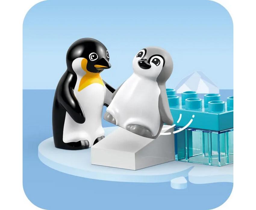 Ξεκινήστε για ένα χαρούμενο ταξίδι μάθησης με νήπια ηλικίας 2 ετών και άνω καθώς τα μεταφέρετε από την Ανταρκτική στην Αφρική με αυτό το χαριτωμένο παιχνίδι κατασκευής με θέμα τη φύση. Αυτό το σετ κατασκευής διαθέτει 2 LEGO® DUPLO® πιγκουίνους και 2 λιοντάρια για να δώσουν έμπνευση στα νήπια να απολαύσουν άφθονο δημιουργικό παιχνίδι. Τονίστε τις διαφορές μεταξύ των γονέων και των μωρών και του θερμού και ψυχρού κλίματος. Βοηθήστε το νήπιό σας να εκφράσει τη στοργική πλευρά του καθώς παίρνει τον ρόλο των ενήλικων ζώων που φροντίζουν τα μικρά τους. Δείξτε του ότι, ακριβώς όπως εσείς, οι γονείς αγαπούν να παίζουν με τα μωρά τους. Μαζί με το παιδί σας, κατασκευάστε μια τσουλήθρα πάγου για τους πιγκουίνους και λιβάδια για τα λιοντάρια. Σε όλη αυτή τη διάρκεια, το νήπιό σας θα αναπτύσσει τις λεπτές κινητικές δεξιότητές του καθώς κατασκευάζει. Τα LEGO DUPLO παιχνίδια με ζώα για νήπια έχουν σχεδιαστεί ειδικά με διασκεδαστικές ιστορίες, έντονα χρώματα και ποικίλες φιγούρες που υποστηρίζουν την κοινωνική και συναισθηματική προσχολική μάθηση με τον πιο διασκεδαστικό τρόπο.
