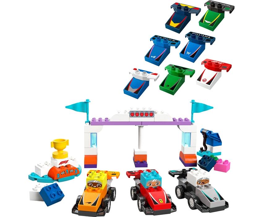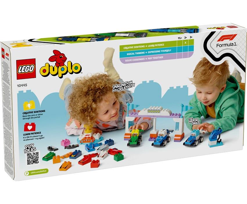 Γνωρίστε στο νήπιό σας τον κόσμο της Formula 1® με αυτό το γεμάτο χαρακτηριστικά σετ κατασκευής LEGO® DUPLO®. Ετοιμαστείτε για συναρπαστικό παιχνίδι καθώς εσείς και το νήπιό σας κατασκευάζετε και αναπαριστάτε συγκλονιστικούς αγώνες. Με γνωστές ομάδες F1®, τα νήπια εξατομικεύουν τα αυτοκίνητα και μετά επιλέγουν τον οδηγό που θα περάσει πρώτος τη γραμμή τερματισμού και θα σηκώσει το τρόπαιο!