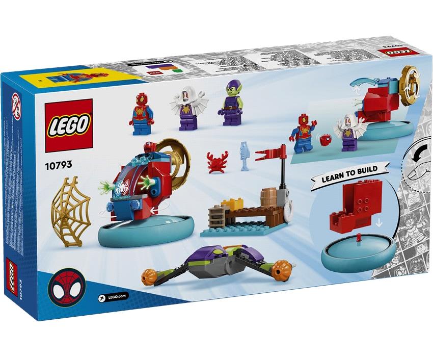 Ο Γκριν Γκόμπλιν έπιασε τον φίλο ρομπότ του Σπάιντι, Trace-E! Το σκάει με το ανεμόπτερό του, αλλά η Ghost-Spider εκτοξεύει έναν μεγάλο, χρυσό ιστό πάνω στον κακό για να τον παγιδεύσει. Ο Σπάιντι μπαίνει στο χόβερ-σπίνερ του και τον καταδιώκει πάνω στο νερό. Θα καταφέρουν οι ήρωες να πιάσουν τον Γκριν Γκόμπλιν και να σώσουν το Trace-E – ή θα βομβαρδιστούν από τα βλήματα-κολοκύθες. Δράση Σπάιντι εναντίον Γκριν Γκόμπλιν για παιδιά ηλικίας 4+.