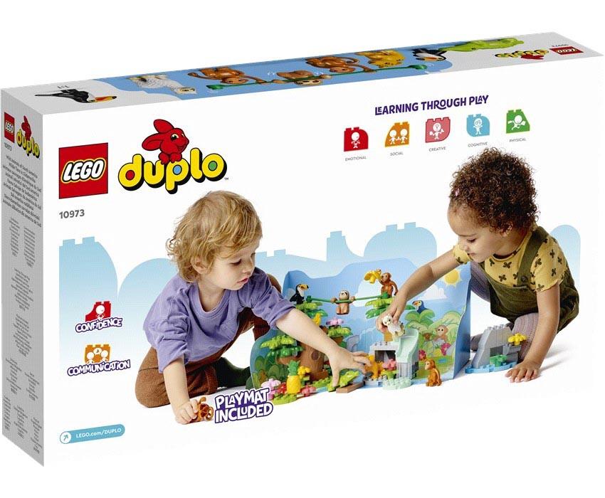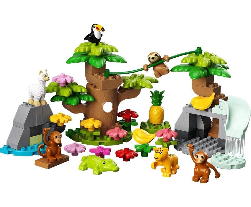 Γνωρίστε τα άγρια ζώα και το φυσικό περιβάλλον της Νότιας Αμερικής μαζί με τον μικρό σας λάτρη των ζώων. Αυτό το πολύπλευρο, ενεργητικό σετ παιχνιδιού είναι γεμάτο με δυνατότητες παιχνιδιού και μάθησης. Γνωρίστε τον κροκόδειλο, τις μαϊμούδες, τον βραδύποδα, το μωρό ιαγουάρο, το τουκάν και το αλπακά. Εξερευνήστε τα δέντρα, τους βράχους και τον καταρράκτη. Μετά, αναδιαμορφώστε το σετ για νέες περιπέτειες στην αναδιπλούμενη, τρισδιάστατη επιφάνεια παιχνιδιού με τη ζούγκλα.