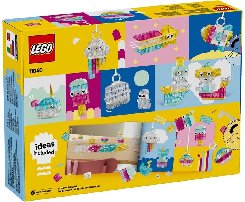 Δημιούργησε μαγικά μοντέλα με πολύχρωμα, διαφανή τουβλάκια! Φτιάξε μια καρδιά, φάντασμα, γοργόνα, αστέρι, μονόκερο, διαστημόπλοιο, σύννεφο, πεφταστέρι, πουλί, ναρβάλ, παγωτό και λουλούδι, και τα δικά σου απίθανα σχέδια. Μετά, αύξησε τη διασκέδαση με ένα μεγάλο κάστρο και δράκο! Με τουβλάκια ανάρτησης για τη δημιουργία ενός κρεμαστού διακοσμητικού, οι διαφανείς δημιουργίες σου θα λάμπουν παντού.