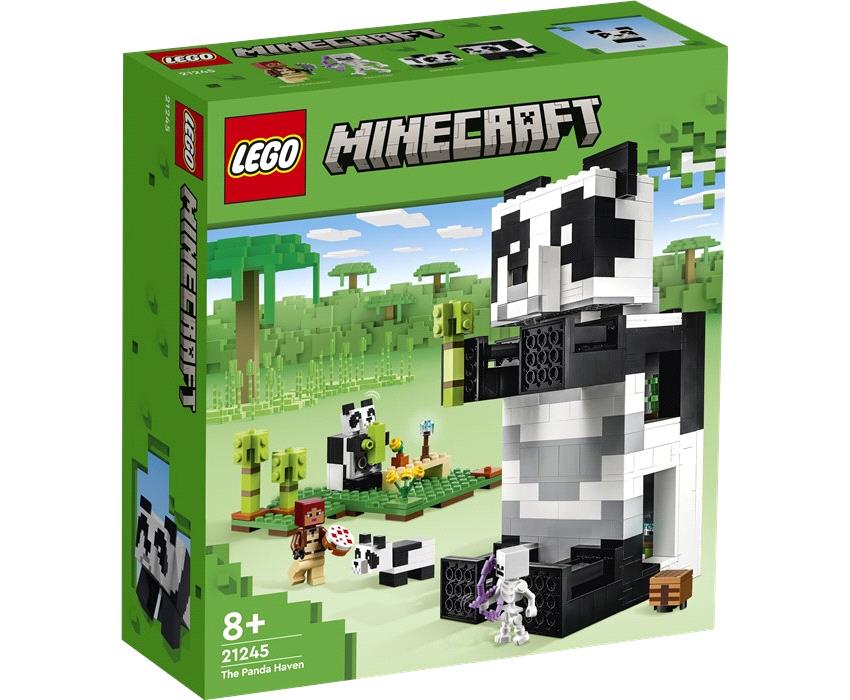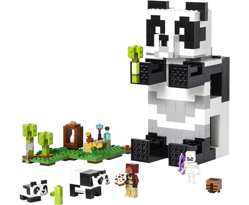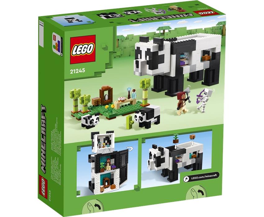 Αν σου αρέσουν τα Minecraft® πάντα, τότε θα λατρέψεις αυτό το 3ώροφο σπίτι-πάντα! Άνοιξε το πίσω μέρος και δες τα διάφορα δωμάτια, το καθένα γεμάτο με κουλ αξεσουάρ για δημιουργική διασκέδαση. Θέλεις μια αλλαγή; Αναδιαμόρφωσε το σπίτι-πάντα για να κάθεται ή να στέκεται στα 4 πόδια! Βγες έξω στη ζούγκλα των μπαμπού μαζί με έναν εξερευνητή. Δώσε λίγη τούρτα στο πάντα και στο μωρό πάντα – αλλά πρόσεχε τον σκελετό με τη βαλλίστρα!