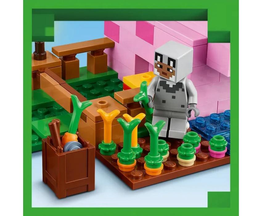 Το LEGO Minecraft The Baby Pig House (21268) είναι ιδανικό παιχνίδι για παίκτες του Minecraft® που αγαπούν την κατασκευή σπιτιών, τα ζώα και τις φάρμες. Είναι ιδανικό δώρο γενεθλίων, γιορτών ή κάθε μέρας για παιδιά ηλικίας 7 ετών και άνω. Με σκηνικό τη διάπλαση δάσους του Minecraft, αυτό το δημιουργικό παιχνίδι κατασκευής σπιτιού περιλαμβάνει πολλές φιγούρες από το δημοφιλές βιντεοπαιχνίδι: έναν χαρακτήρα ήρωα με εμφάνιση λύκου, ένα γουρουνάκι, ένα ενήλικο γουρούνι και ένα πίγκλιν ζόμπι. Τα παιδιά μπορούν να αναπαραστήσουν δράση από το βιντεοπαιχνίδι, όπως να σελώσουν το ενήλικο γουρούνι και να κρεμάσουν ένα καρότο μπροστά του για να κάνουν μια βόλτα γύρω από το σπίτι σε σχήμα γουρουνιού και στον κήπο. Υπάρχει ένα χωράφι με πατάτες και παντζάρια για καλλιέργεια και ένα λιβάδι με πύλη για να περάσει το μωρό γουρούνι. Τα παιδιά μπορούν να αποφύγουν το πίγκλιν ζόμπι που θέλει να χαλάσει τη διασκέδαση, μπαίνοντας μέσα στο σπίτι, όπου θα βρουν ένα κρεβάτι, βιβλιοθήκη και τραπέζι κατασκευών. Η εφαρμογή LEGO® Builder προσφέρει στα παιδιά επιπλέον διασκέδαση χρησιμοποιώντας τη συσκευή τους για να ζουμάρουν και να περιστρέφουν μοντέλα σε 3D.