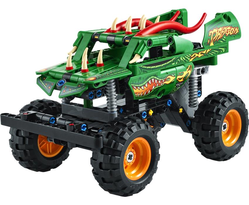 Πιστεύεις ότι αντέχεις την ένταση του Monster Jam™; Ώρα να δοκιμάσεις τις ικανότητές σου με το σετ LEGO® Technic Monster Jam Dragon™. Κατασκεύασε το όχημα, με τα τρομερά καρφιά, κέρατα, και φλογισμένες λεπτομέρειες δράκου. Μετά, σύρε προς τα πίσω τον κινητήρα και κάνε το να τρέξει γρήγορα ή να κάνει κουλ κόλπα σαν πραγματικός διαγωνιζόμενος! Όταν είναι ώρα για κάτι καινούργιο, ανακατασκεύασε το monster truck σε Μπάγκι Κροκόδειλο.