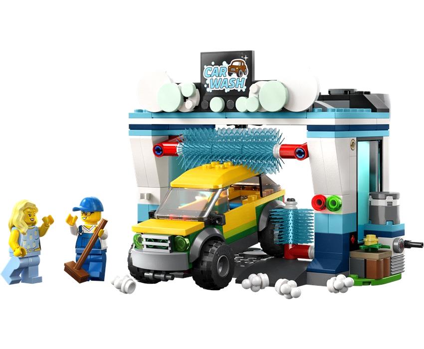 Κατευθύνσου προς το LEGO® City Πλυντήριο Αυτοκινήτων. Πέρασε μέσα από το πλυντήριο για να ενεργοποιήσεις τις περιστρεφόμενες βούρτσες πλυσίματος. Αναποδογύρισε το δοχείο για να ρίξεις στο αυτοκίνητο σαπουνάδες. Μετά, τοποθέτησε τους ανεμιστήρες για να στεγνώσεις το όχημά σου και, στη συνέχεια, πήγαινε στην άλλη πλευρά για να φουσκώσεις τα λάστιχά σου. Το πλύσιμο του αυτοκινήτου δεν ήταν ποτέ τόσο διασκεδαστικό!