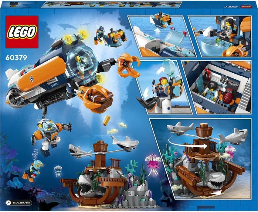 Κατέβα στα βάθη του ωκεανού με το Εξερευνητικό Υποβρύχιο Μεγάλου Βάθους. Έλα μαζί με το πλήρωμα στο σκάφος όπου θα βρεις ένα απίθανο σφαιρικό κόκπιτ και ένα καλά εξοπλισμένο εργαστήριο. Πλησίασε μια γιγαντιαία μέδουσα και ανακάλυψε ένα γεμάτο καρχαρίες ναυάγιο με βυθισμένο θησαυρό. Στείλε το υποβρύχιο ντρόουν για μια πιο κοντινή επιθεώρηση ή μπες μέσα στη στολή κατάδυσης που μοιάζει με εξωστολή για έναν περίπατο ανακάλυψης στον πυθμένα της θάλασσας!
