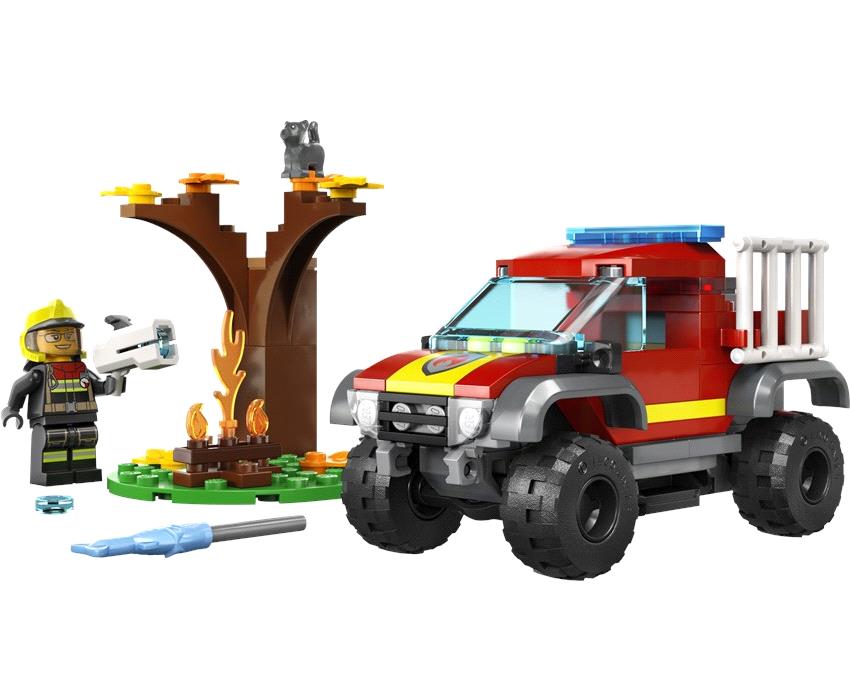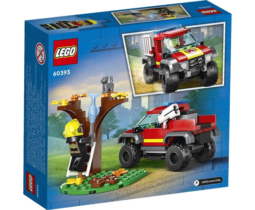Ω, όχι… μια υπαίθρια φωτιά ξέφυγε από τον έλεγχο! Ανέβα στο σούπερ κουλ Πυροσβεστικό Όχημα 4×4 και τρέξε επιτόπου. Ωχ! Ένα γατάκι παγιδεύτηκε στο δέντρο. Πιάσε τον πυροσβεστήρα και ρίξε κάτω τις φλόγες. Χρησιμοποίησε τη σκάλα για να σώσεις το γατάκι. Και όταν τελειώσεις, δώσε στο γατάκι μια γεύση από το νόστιμο, ψημένο ψάρι. Ετοιμάσου για πυροσβεστικές περιπέτειες LEGO® City, γεμάτες δράση!
