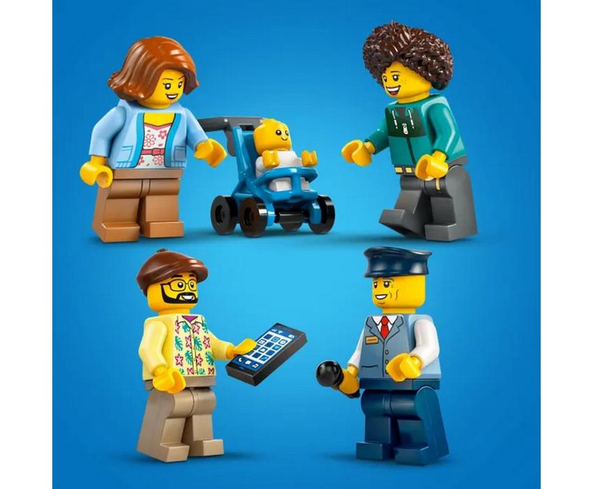 Ανέβα στο κόκκινο διώροφο λεωφορείο για μια ξενάγηση στην πόλη. Γύρισε την πινακίδα για να δείξεις τον προορισμό σου. Διάλεξε ανάμεσα στο κέντρο της πόλης, το λιμάνι, το μουσείο ή το πάρκο της LEGO® City. Πάρε καθ’ οδόν τους επιβάτες που περιμένουν. Ασφάλισε το παιδικό καρότσι στον χώρο αποσκευών και βάλε τους επιβάτες να καθίσουν στο κάτω επίπεδο ή στο ανοιχτό πάνω επίπεδο. Καλή διασκέδαση!