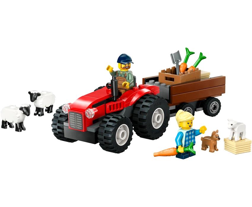 Έλα με τον αγρότη και την κόρη του στην εξοχή της LEGO® City. Σύνδεσε το τρέιλερ και φόρτωσε τις μπάλες σανού, τα καλάθια με τα καρότα και το κουταβάκι. Ανέβα στο απίθανο κόκκινο τρακτέρ και πήγαινε στα χωράφια. Το ανώμαλο έδαφος δεν εμποδίζει αυτά τα τεράστια ελαστικά! Τάισε τα πρόβατα λίγο σανό και δες αν τα αρνάκια είναι υγιή. Διασκεδαστικές αγροτικές περιπέτειες σε περιμένουν στη LEGO City!