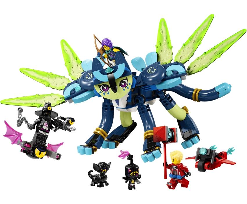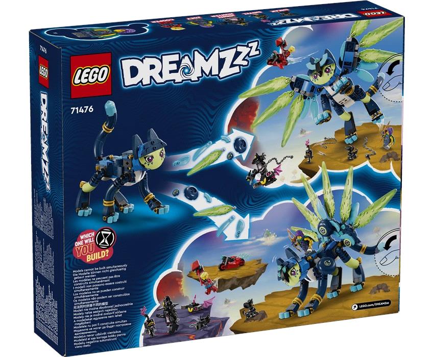 Βοήθησε την ηρωίδα του LEGO® DREAMZzz™ Ζόι να σώσει τον βοηθό της Ζάιον από τον μοχθηρό Νυχτοθηρευτή! Κατασκεύασε τον Ζάιον ως γρήγορη Γατοκουκουβάγια με φτερά ή ως Γατοπαγώνι με πανέμορφη ουρά. Σε διαμόρφωση Γατοκουκουβάγιας μπορεί να πετάξει μακριά από τα εφιαλτικά πλάσματα, και σε διαμόρφωση Γατοπαγωνιού μπορεί να τα πολεμήσει! Θα καταφέρει η Ζόι να τον σώσει; Μόνο εσύ αποφασίζεις…