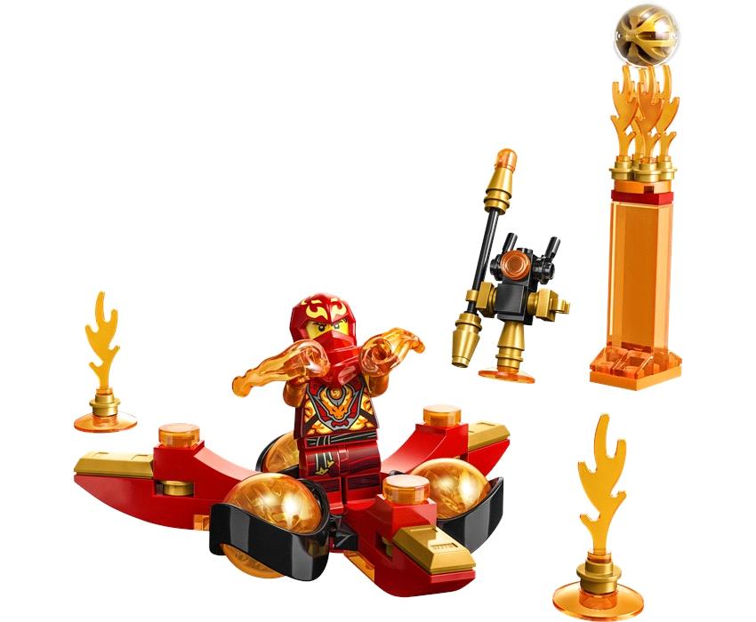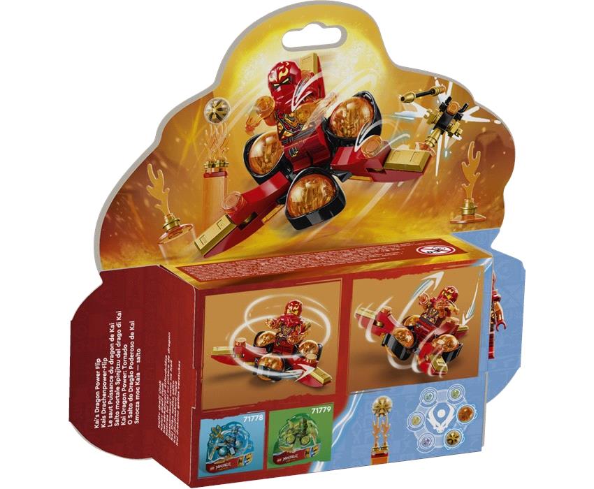 Προπόνησε τον Κάι με Δύναμη Δράκου για να βελτιώσει τις νίντζα ικανότητές του με αυτήν την σούπερ απίθανη πίστα εμποδίων! Τοποθέτησέ τον μέσα στη σβούρα, χτύπησε ένα από τα χέρια του και δες τον να κάνει ένα απίθανο ανάποδο σάλτο. Πρέπει να αποφύγει τα πύρινα εμπόδια, να ρίξει κάτω το επικίνδυνο Αυτοκρατορικό Ντρόιντ και να πιάσει το πολύτιμο χρυσό στοιχείο ενεργειακού πυρήνα δράκου από την κορφή του φλεγόμενου στηρίγματός του. Συνέχισε την εξάσκηση για να προστατεύσεις τον νέο κόσμο του NINJAGO®!