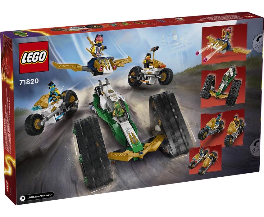 Έλα μαζί με τους νίντζα καθώς αντιμετωπίζουν δύο μοχθηρά τσιράκια του Λορντ Ρας! Μπες στη μάχη με το Συνδυαστικό Όχημα Ομάδας Νίντζα ή χώρισέ το σε 4 μικρότερα οχήματα για να επιτεθείς από παντού! Εφόρμησε από ψηλά με το γκλάιντερ της Σόρα με 2 εκτοξευτές καρφιών και τρέξε με το εκτός δρόμου αγωνιστικό του Λόιντ και τις μοτοσικλέτες του Κόουλ και της Νία. Η ομαδική δουλειά θα κερδίσει τη μάχη!