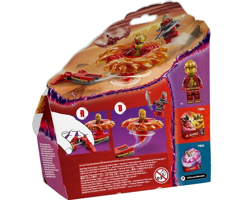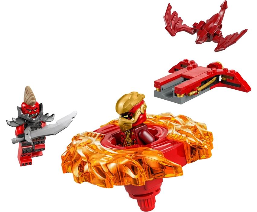 Ετοιμάσου να στείλεις τον Κάι σε μάχη εναντίον ενός Δρακονιανού Ανιχνευτή! Βάλε τον νίντζα Μάστερ της Φωτιάς στο εσωτερικό της Σβούρας Σπιντζίτσου Δράκος και πάτησε το κουμπί εκτόξευσης. Δες τον να στριφογυρίζει γρήγορα για να νικήσει τον μοχθηρό αντίπαλο. Όταν η σβούρα πετύχει τον στόχο, μπορεί να εκτοξευτούν 2 στοιχεία ισχύος. Ο Κάι πρέπει να νικήσει για να σώσει τον νέο κόσμο του NINJAGO®!