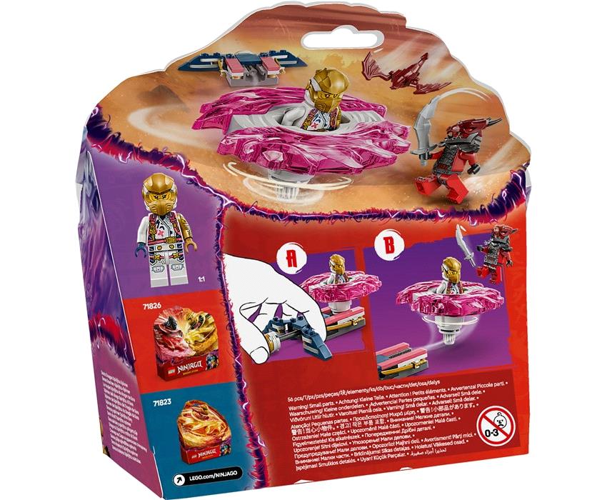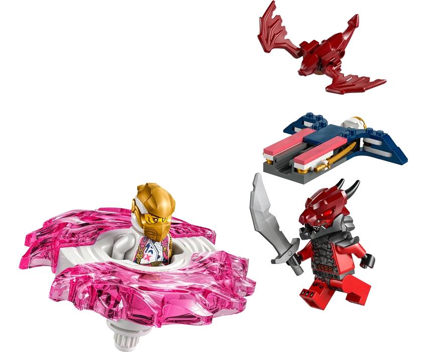 Ετοιμάσου να στείλεις τη Σόρα σε μάχη εναντίον ενός Δρακονιανού Πολεμιστή! Βάλε τη νίντζα Μάστερ της Τεχνολογίας μέσα στη Σβούρα Σπιντζίτσου Δράκος και πάτησε το κουμπί εκτόξευσης. Δες την να στριφογυρίζει γρήγορα για να νικήσει τον μοχθηρό αντίπαλο. Όταν η σβούρα πετύχει τον στόχο, μπορεί να εκτοξευτούν 2 στοιχεία ισχύος. Η Σόρα πρέπει να νικήσει για να σώσει τον νέο κόσμο του NINJAGO®!