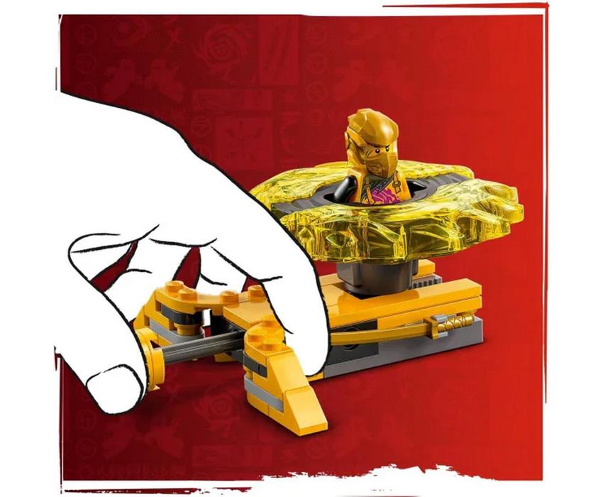 Το LEGO Ninjago Dragon Spinjitzu Battle Pack (71826) δίνει σε αγόρια και κορίτσια ηλικίας 6 ετών και άνω την ευκαιρία να αναπαραστήσουν απίστευτη δράση από τη σεζόν 3 της τηλεοπτικής σειράς NINJAGO® Η Άνοδος των Δράκων. Αυτό το μικρό σετ παιχνιδιού δράσης LEGO® διαθέτει ναό αρένας μάχης, 2 μίνι φιγούρες Arin και Rush και 2 σβούρες Spinjitzu δράκους για να τις τοποθετούν τα παιδιά μέσα στους εκτοξευτές και να τις στέλνουν σε στριφογυριστές μάχες μεταξύ τους. Τα παιδιά απολαμβάνουν απίθανο παιχνίδι ρόλων με περιπέτειες καθώς σκηνοθετούν συγκρούσεις του καλού με το κακό μεταξύ της κίτρινης σβούρας του Arin και της κόκκινης σβούρας του Rush, που διαθέτουν και οι δύο αποσπώμενα στοιχεία ισχύος. Οι NINJAGO χαρακτήρες μπορούν να αναβαθμίσουν τις σβούρες τους με χρυσά στοιχεία, που μπορεί να τα κερδίσουν χτυπώντας και γκρεμίζοντας την αρένα μάχης.