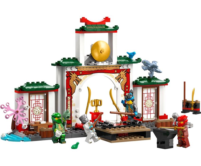Εκπαίδευσε τους αγαπημένους σου νίντζα στον σούπερ κουλ Ναό Σπιντζίτσου για Νίντζα! Η Νία, ο Κάι, ο Λόιντ και ο Ζέιν είναι έτοιμοι να πηδήσουν πάνω σε κινούμενες πλάκες σε μια ειδική σκηνή τουρνουά για να εξασκηθούν. Ανάμεσα στις προπονήσεις, μπορούν να χαλαρώσουν στο τεϊοπωλείο ή στον μικρό κήπο, να παίξουν με το μωρό Ρίγιου ή να ψάξουν για ένα κρυμμένο γράμμα. Ετοιμάσου να γίνεις νίντζα!