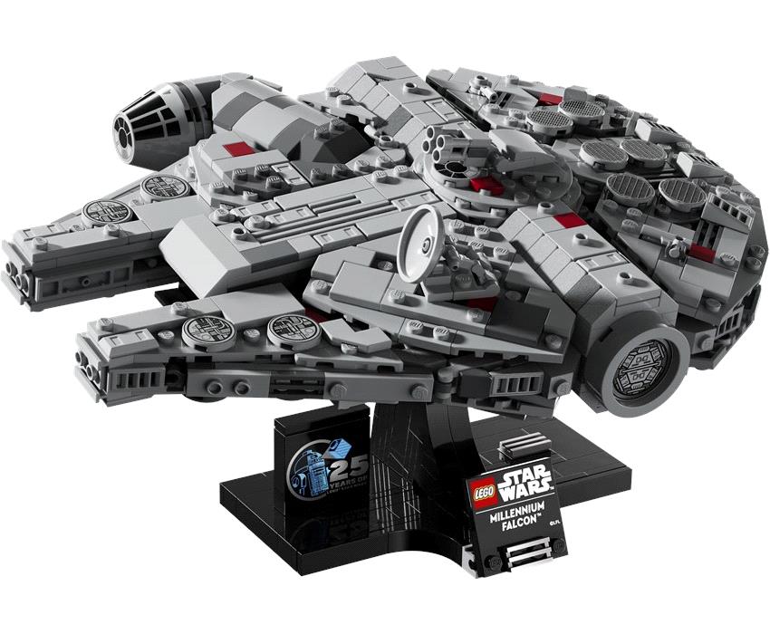 Επιστρατεύστε τη δημιουργική σας δύναμη και κατασκευάστε το πιο εμβληματικό αστρόπλοιο στο σύμπαν του Star Wars™: Το Μιλένιουμ Φάλκον του Χαν Σόλο. Αποτυπώστε τις άμεσα αναγνωρίσιμες λεπτομέρειες του αστρόπλοιου όπως εμφανίζεται στην ταινία Star Wars: Μια Νέα Ελπίδα. Τοποθετήστε το Μιλένιουμ Φάλκον σε δυναμική γωνία πάνω στη βάση, προσθέστε την πινακίδα με όνομα και το ειδικό τουβλάκι για την 25η επέτειο των LEGO® Star Wars και ολοκληρώστε ένα επικό διακοσμητικό κομμάτι.
