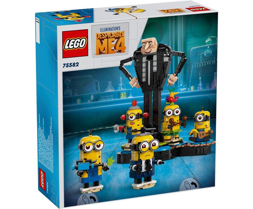 Φτιάξε τον δικό σου Γκρου και Μίνιονς! Μετακίνησε βραχίονες, χέρια και δάχτυλα του πρώην σούπερ κακού σε διάφορες πόζες. Δες την Τζέρι με τις μαράκες και το φρουτοκαπέλο, τον μυστικό πράκτορα Ντέιβ με έλικα κεφαλιού και γουόκι-τόκι, τον Beedoo Minion με μεγάφωνο, τον Μελ με γιουκαλίλι και τον Κέβιν με όπλο αερίων. Γύρισε το καθιστό Μίνιον, και τα άλλα Μίνιονς χορεύουν γύρω από το αφεντικό τους!