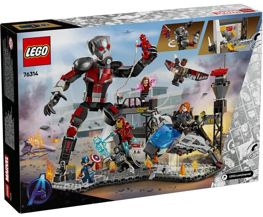 Φέρε στη ζωή τη μάχη στο αεροδρόμιο από το Captain America: Εμφύλιος Πόλεμος των Marvel Studios με την επική αναμέτρηση δύο ομάδων Υπερηρώων, Άιρον Μαν, Σπάιντερ-Μαν, Black Widow, Μαύρος Πάνθηρας, και Κάπτεν Αμέρικα, Στρατιώτης του Χειμώνα, Γουάντα, Φάλκον, Ant-Man. Με τον Ant-Man να ορθώνεται πάνω από το αεροδρόμιο και το Κουίντζετ να τον συνοδεύει, ετοιμάσου για τεράστια δράση!