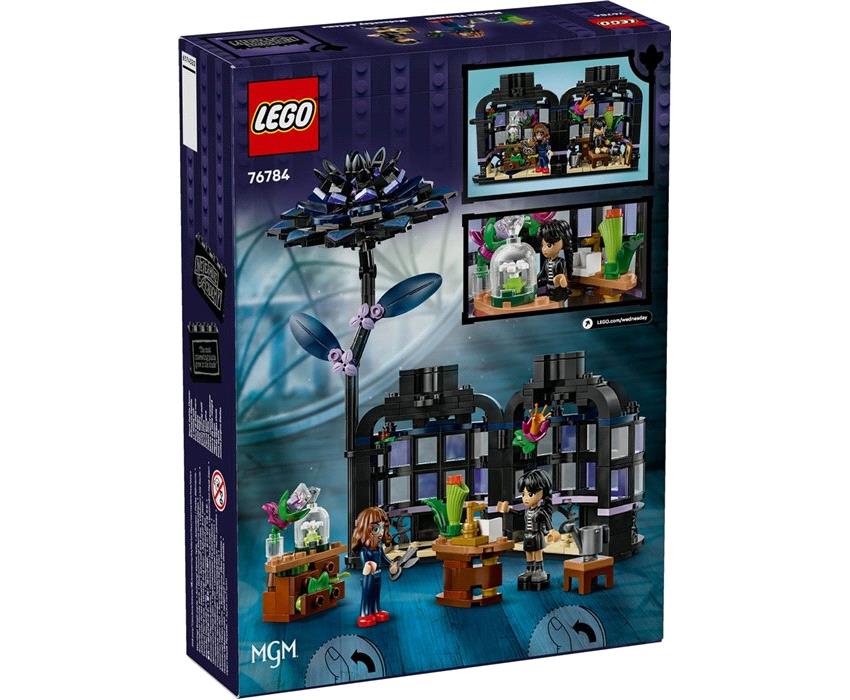 Δείξε το αγαπημένο λουλούδι της Γουένσντεϊ. Φτιάξε το γοτθικού στυλ βάζο και τη μαύρη ντάλια και μετά, άνοιξε το βάζο και εξερεύνησε το θερμοκήπιο, έτοιμο για μάθημα βοτανολογίας. Ξαναζήσε σκηνές από την τηλεοπτική σειρά ή δημιούργησε νέες ιστορίες με τη Γουένσντεϊ και την Καθηγήτρια Θόρνχιλ. Μετακίνησε τα έπιπλα, τάισε το σαρκοφάγο φυτό με το σκουλήκι και μετά, κλείδωσε το βάζο για διακόσμηση.