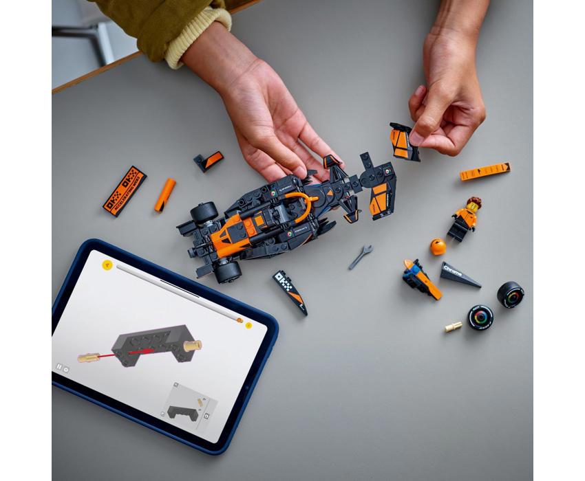 Ζήστε όλο τον ενθουσιασμό των αγώνων της Formula 1® με αυτό το σετ οχήματος LEGO® Speed Champions Αγωνιστικό Αυτοκίνητο McLaren F1® Team MCL38 (77251) για αγόρια και κορίτσια ηλικίας 10 ετών και άνω. Παιδιά και ενήλικες συλλέκτες αυτοκινήτων κατασκευάζουν, επιδεικνύουν και αναπαριστούν αγώνες με ένα μοντέλο αγωνιστικού αυτοκινήτου F1 που διαθέτει σχεδιαστικές λεπτομέρειες από το αληθινό αυτοκίνητο που συμμετείχε στη σεζόν 2024 της Formula 1. Το μοντέλο αυτοκινήτου F1 διαθέτει κόκπιτ που ανοίγει σηκώνοντας τη μπάρα ασφαλείας, πίσω αεροτομή, ανάρτηση wishbone, αυτοκόλλητα χορηγού και φαρδιά πίσω ελαστικά με τη λέξη “Pirelli.” Το όχημα συνοδεύεται επίσης από μίνι φιγούρα οδηγού που φορά στολή McLaren και κράνος και τοποθετείται μέσα στο κόκπιτ για αγωνιστική δράση. Τα σετ LEGO Speed Champions δίνουν την ευκαιρία σε παιδιά και λάτρεις των αγώνων να κατασκευάσουν τα μοντέλα μερικών από τα πιο εμβληματικά οχήματα του κόσμου, που περιλαμβάνουν και άλλα αυτοκίνητα F1 (πωλούνται χωριστά) από τη σεζόν 2024 του πρωταθλήματος. Κάθε σετ αυτοκινήτου μπορεί να δημιουργηθεί χρησιμοποιώντας τις έντυπες οδηγίες κατασκευής ή την εφαρμογή LEGO Builder, που καθοδηγεί εσάς και το παιδί σας σε μια απολαυστική περιπέτεια κατασκευής.