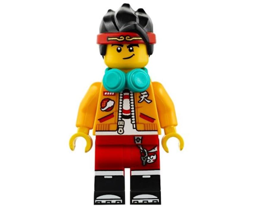 Monkie Kid – Bright Light Orange Open Jacket, Dark Turquoise Headphones, Smirk / Angry